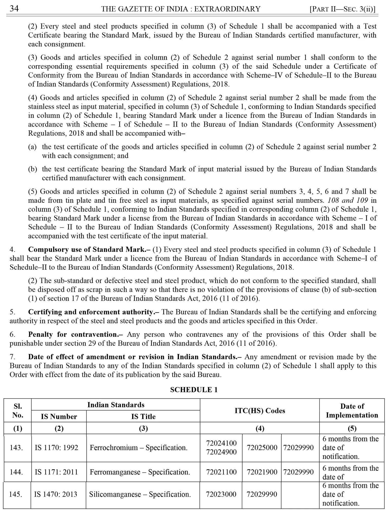 The Technical Division, Ministry of Steel, Govt. of India, has issued an order, making it mandatory for silicomanganese to be used in India, whether manufactured in India or imported from foreign countries, shall mandatorily carry the Standard Mark of the Bureau of Indian Standards under a valid BIS licence. In short, it has become obligatory for all the manufacturers of silicomanganese, wherein in India or overseas, to immediately apply for BIS licence and obtain a valid BIS certification licence before that the last date of implementation of the order, i.e., 04 August 2024.