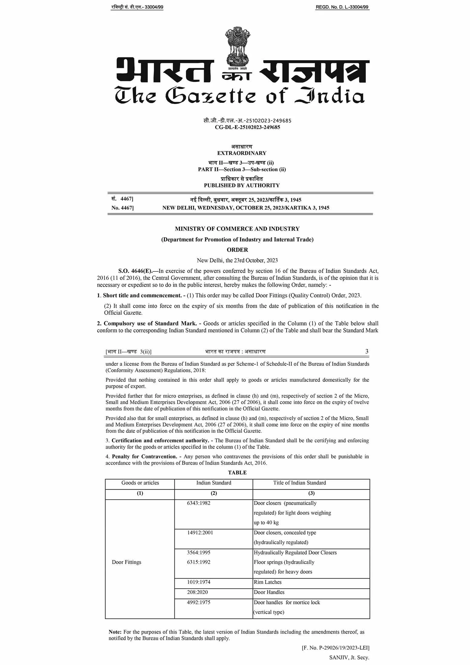 The Government of India periodically updates Quality Control Orders (QCO), expanding its coverage to include more products. Recently, Door Handles for Mortice Locks as per IS 4992:1975 has been included in the ambit of QCO. A significant provision mandates that products imported into India must have BIS Certification.