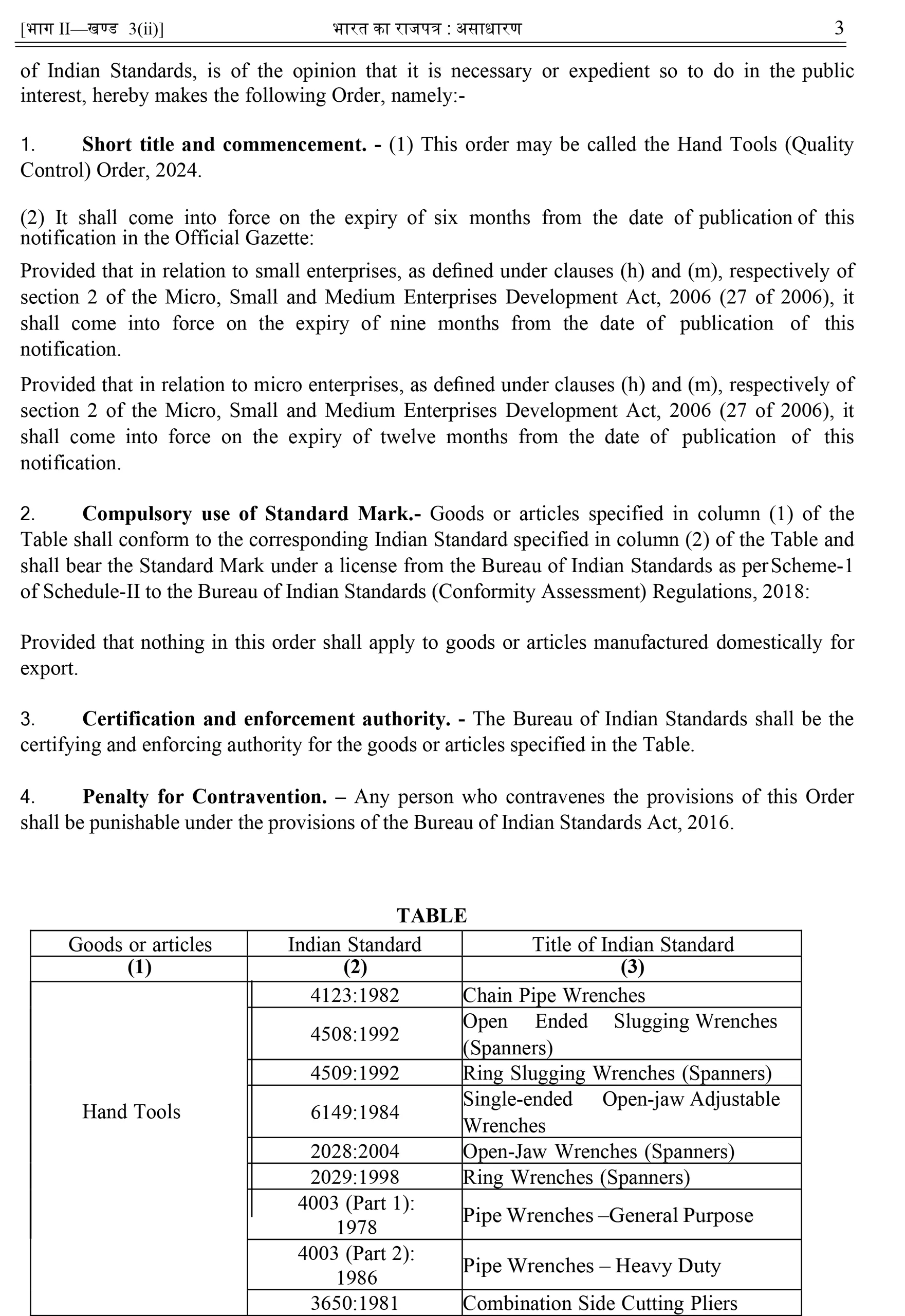 The Indian government has mandated BIS certification for all General Purpose Pipe Wrenches, whether domestically produced or imported, to ensure compliance with IS 4003 (Part 1). This regulation aims to uphold safety and quality standards across the board, making certification essential for manufacturers to market their tools in India.