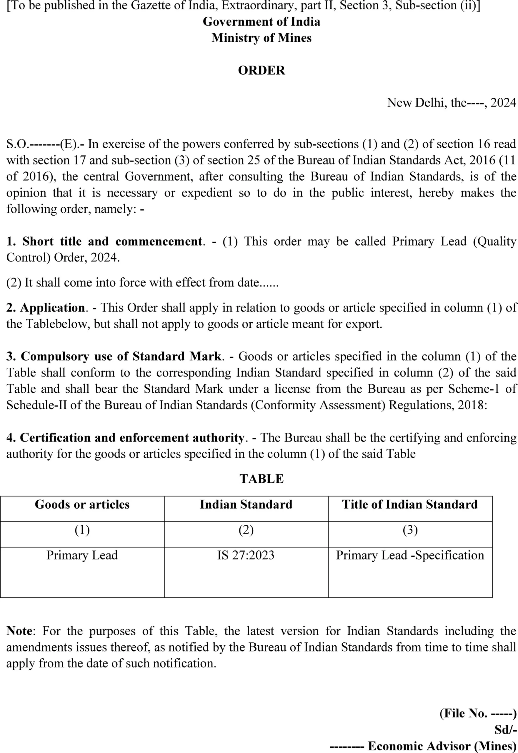 BIS CERTIFICATION OF PRIMARY LEAD AS PER IS 27
