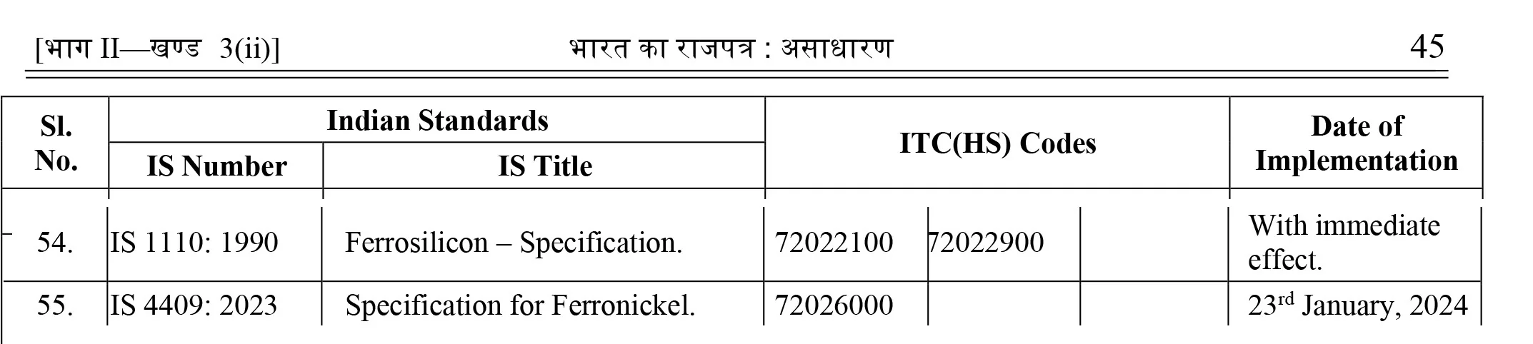 The Technical Division, Ministry of Steel, Govt. of India, has issued an order, making it mandatory for ferronickel to be used in India, whether manufactured in India or imported from foreign countries, shall mandatorily carry the Standard Mark of the Bureau of Indian Standards under a valid BIS licence. In short, it has become obligatory for all the manufacturers of ferronickel, wherein in India or overseas, to immediately apply for BIS licence and obtain a valid BIS certification licence before that the last date of implementation of the order, i.e., 23 July 2024.
