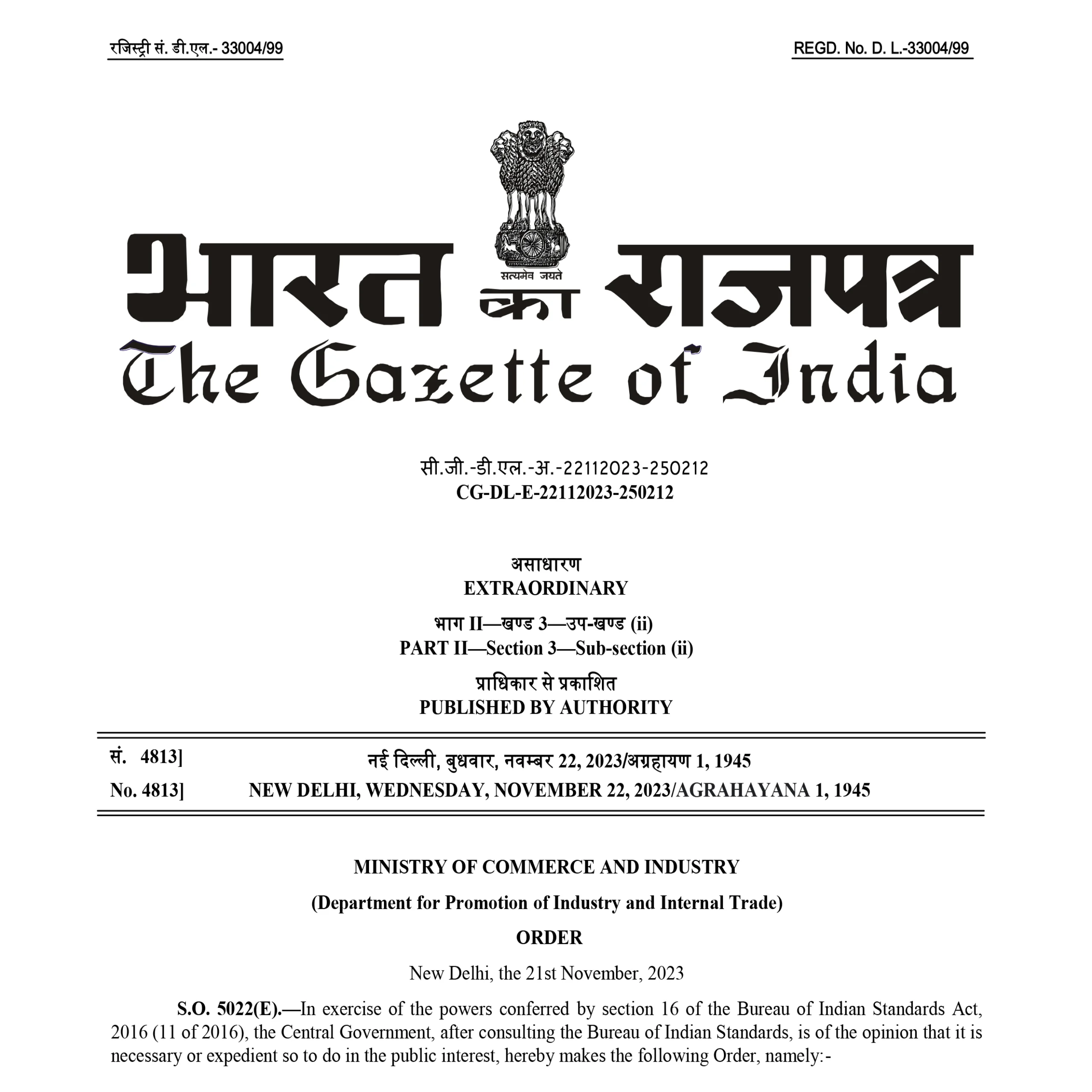 The Technical Division, Ministry of Steel, Govt. of India, has issued an draft order, proposing to make it mandatory for hot-rolled and cold-rolled steel strips intended for processing of semi/fully processed non-grain oriented electrical steel or fully processed grain oriented electrical steel to be used in India, whether manufactured in India or imported from foreign countries, to mandatorily carry the Standard Mark of the Bureau of Indian Standards under a valid BIS licence.