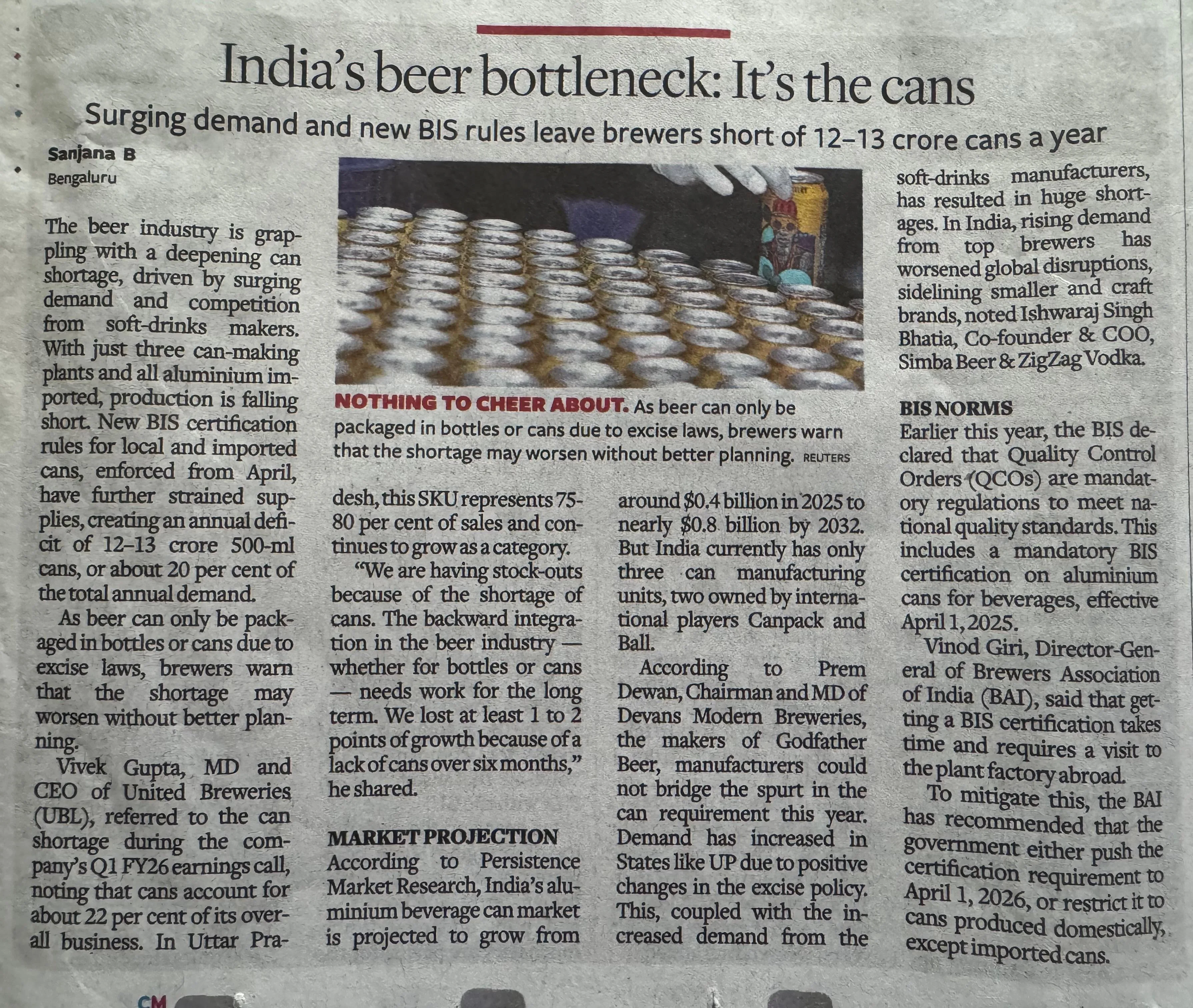 •The new BIS Quality Control Orders (QCOs), which mandate certification for all aluminium cans (local and imported), effective April 1, 2025